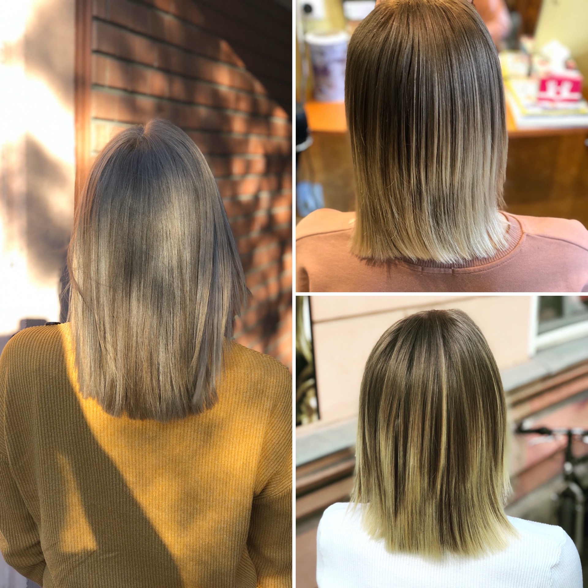 Vendégem haja a póthaj levétele után szinte fellélegzett. Azonnal elkezdtük a hajkezelését. Az Olaplex No.2-el és a Steampod szérumot&krémet használtam. Szerencsére a haja festetlen volt így lenövesztésével vagy újra festésével nem kellet sort keríteni.